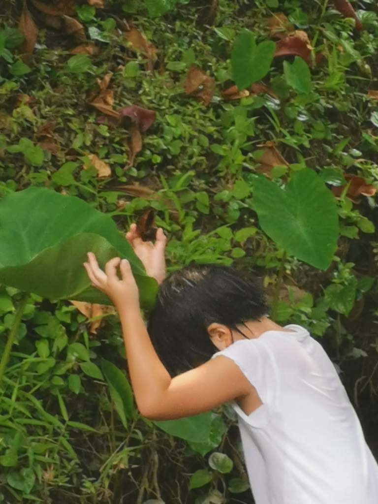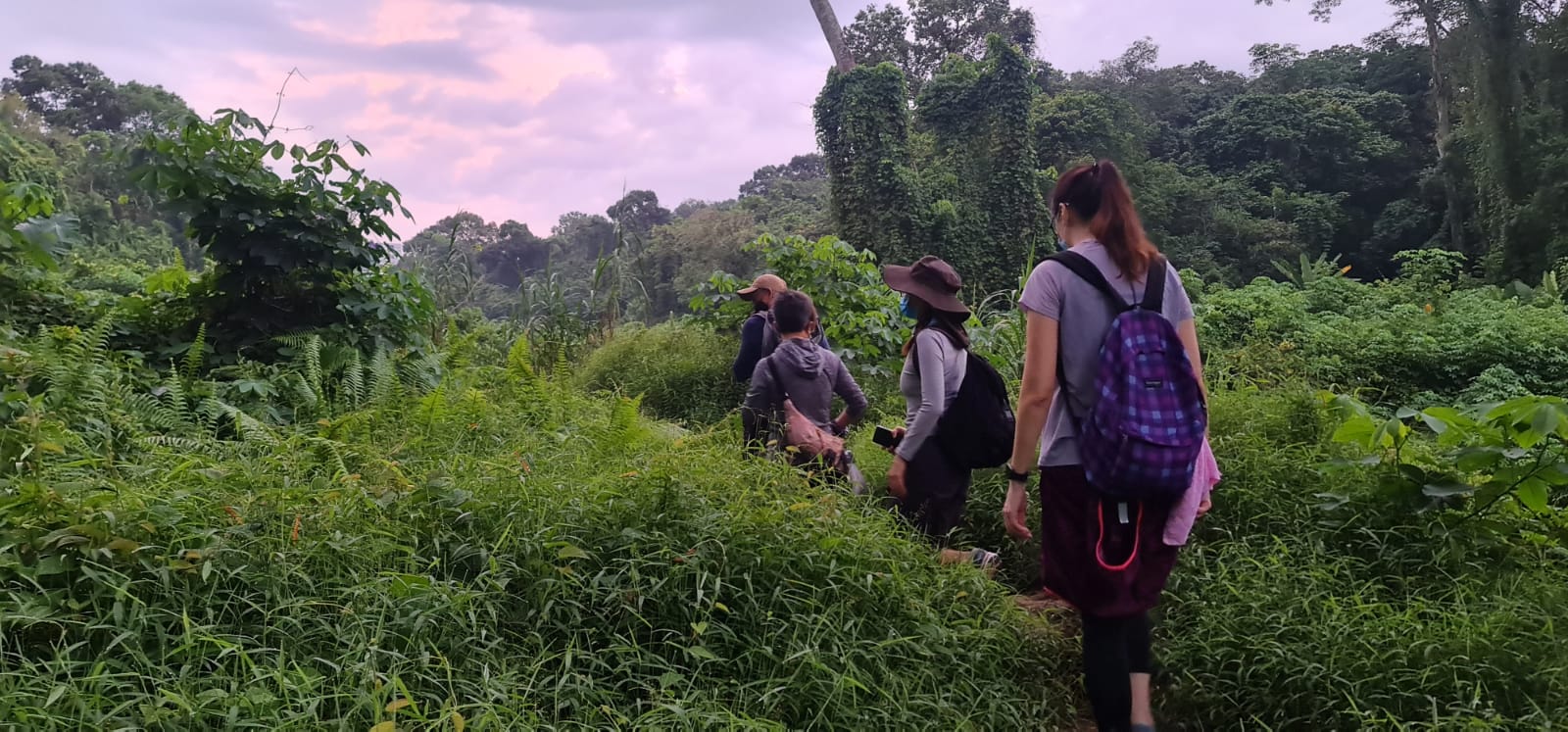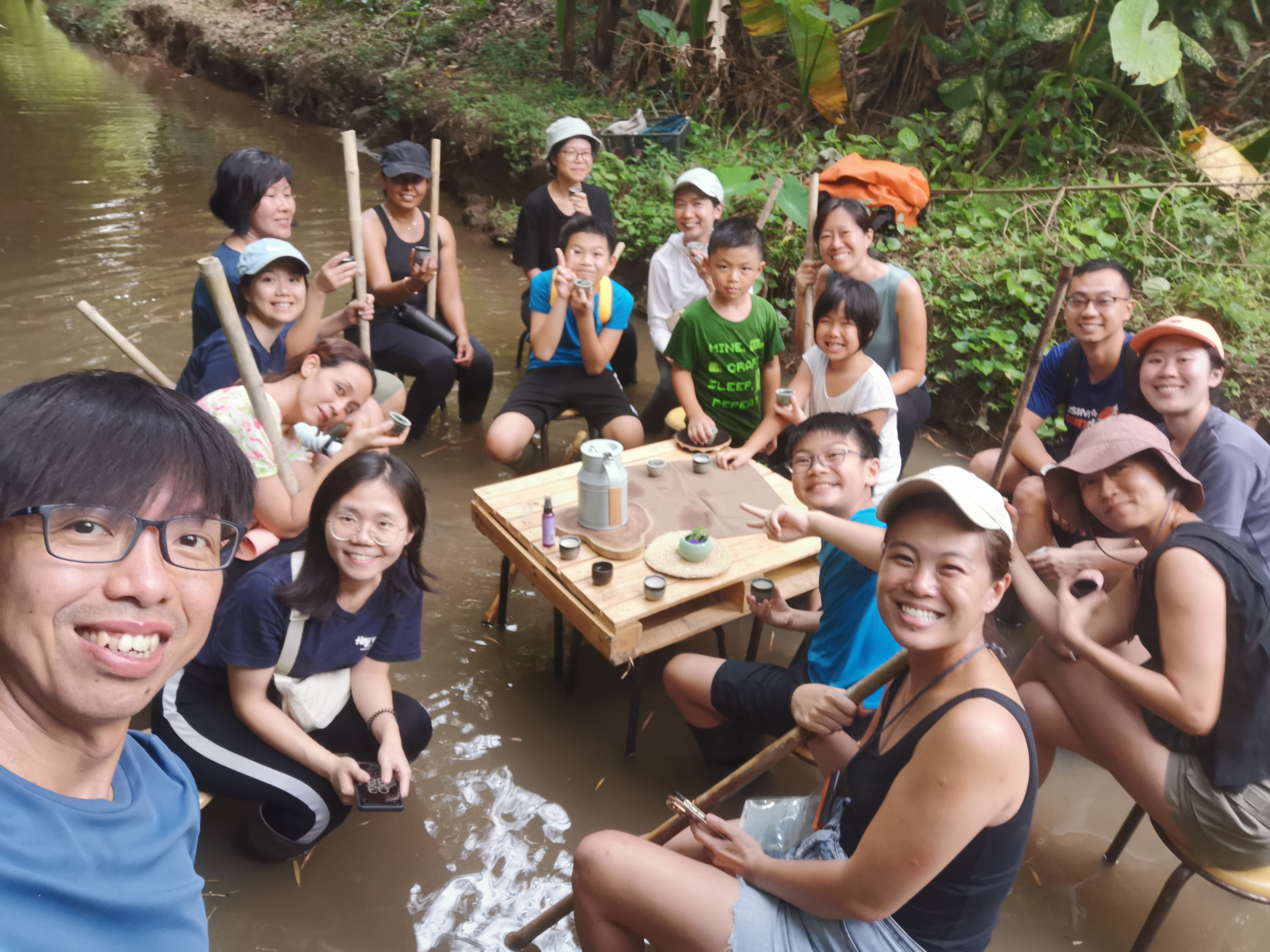 Family-friendly nature exploration in the stream at Kampung Kampus.